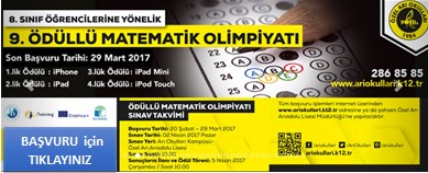 Özel Arı Koleji Matematik Olimpiyatları için geri sayım başladı. Özel Arı Okulları gençlerin matematiksel düşünme becelerilerini geliştirmek ve problemlere farklı çözüm yolları üretebilmelerine yönelik olarak Matematik Olimpiyatları düzenliyor. Her sene düzenli olarak gerçekleştirilen Matematik Olimpiyatlarının bu sene 8. düzenleniyor. Matematik Olimpiyatlarına Başvurmak için TIKLAYINIZ