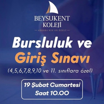 Beysukent Koleji Bursluluk Sınavına başvurular devam ediyor. Beysukent Koleji Bursluluk Sınavı 11 Şubat 2023 Cumartesi günü yapılacak. Beysukent Koleji Bursluluk Sınavında başarı gösteren öğrencilere 2023-2024 eğitim yılında, burslu ve indirimli eğitim hakkı sunulmaktadır. Beysukent Koleji Bursluluk Sınavına online başvurmak ve sınav ile ilgili detaylar için aşağıda yer alan kısayola TIKLAYABİLİRSİNİZ.