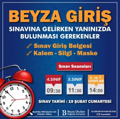 12-13 Mart 2022 ve 19-20 Mart 2022 Cumartesi ve Pazar günü yapılacak olan Zafer Yayınları Ankara Geneli TYT-AYT Deneme Sınavı başvurusu için TIKLAYINIZ.