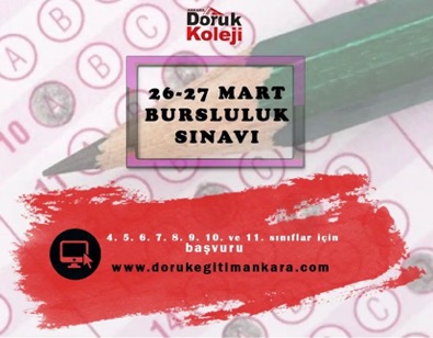 Doruk Koleji Bursluluk Sınavına katılmak isteyenler için sınav tarihleri açıklandı. Öğrenciler Doruk Koleji Bursluluk Sınavına 26-27 Mart 2022 Cumartesi ve Pazar günleri girebilecekler. Doruk Koleji Bursluluk Sınavına online başvurmak ve sınav ile ilgili detaylar için aşağıda yer alan kısayola TIKLAYABİLİRSİNİZ.